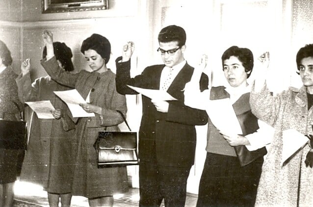 Ορκωμοσία κατά τη λήψη του πτυχίου στο Πανεπιστήμιο Αθηνών, 1962